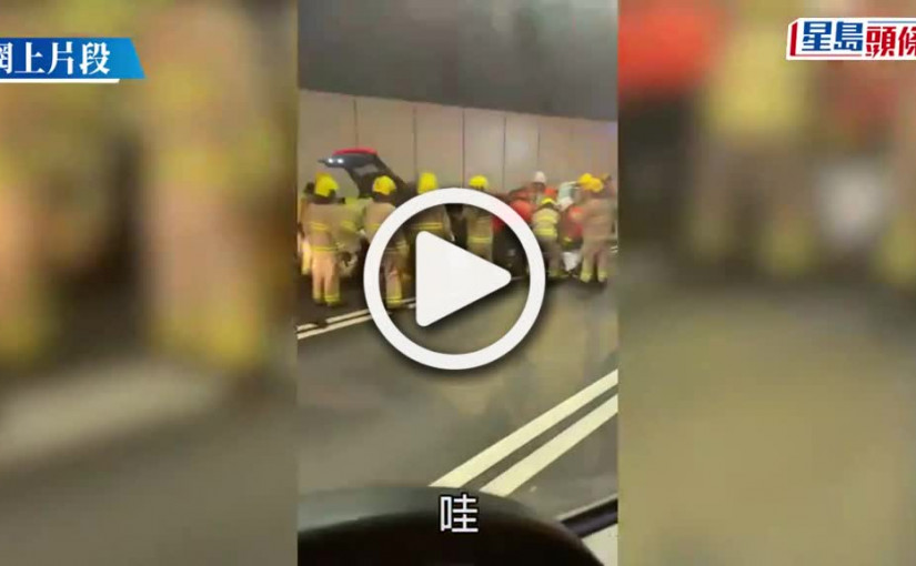 (視頻)私家車西隧管道連撞輕貨的士 司機一度被困救出送院