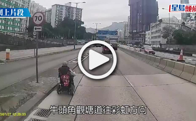 (視頻)8旬翁坐電動輪椅觀塘道行駛 身旁車輛擦身過驚險萬分 警到場截獲