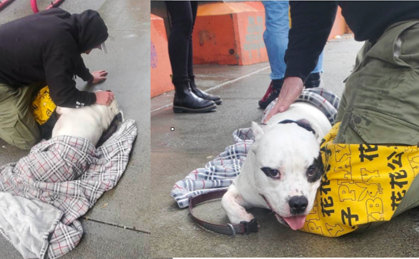 據CTV報道,社交媒體上分享的照片顯示,這只名叫「泰坦」的狗周二在科多瓦街(Cordova St.)夾哥倫比亞街(Columbia St.)附近受到電擊後,趴在地上,身上蓋著毯子。