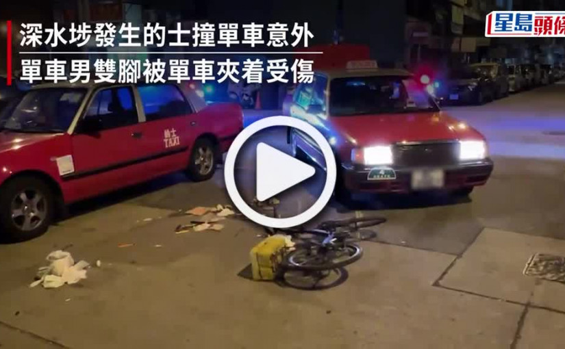 (視頻)深水埗單車疑逆線捱的士撞 男子墮地被單車夾腳