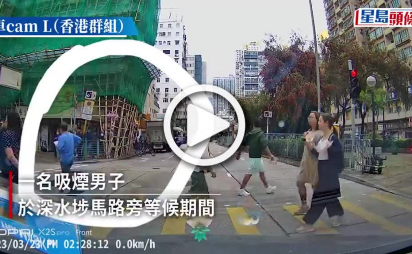(視頻)深水埗吸煙男「奇蹟」挨冧路牌 網民爆笑:大力士柱男破柱|Juicy叮