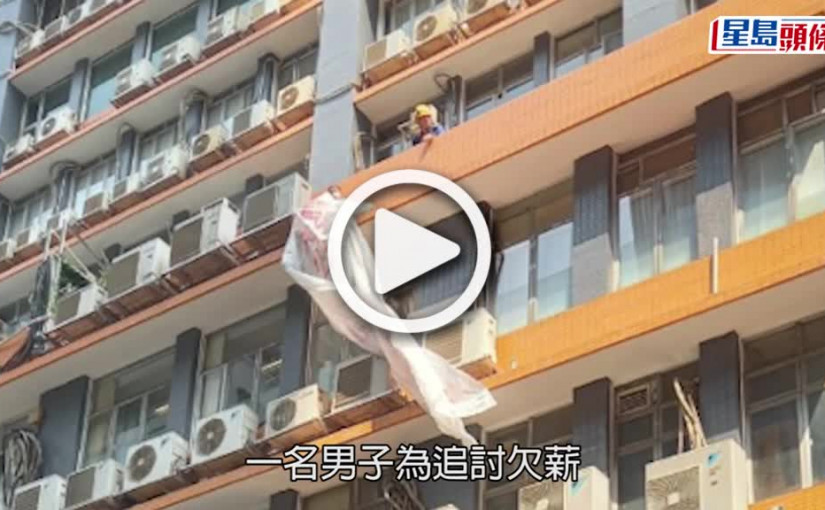 (視頻)長沙灣男子危站工廈4樓簷篷 拉直幡追薪
