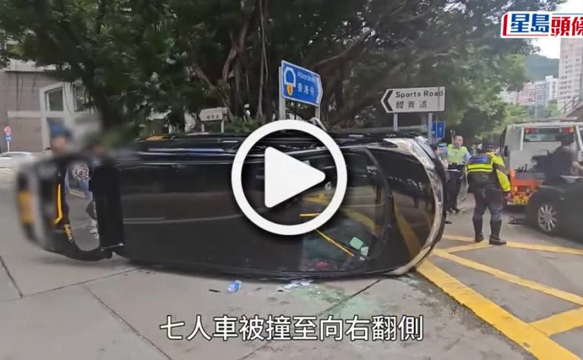 (視頻)灣仔七人車捱撞至翻側 司機被困救出送院