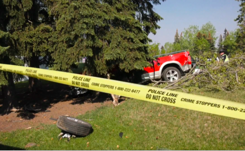 警方證實,皮卡司機於周三早上被捕,一輛紅色Dodge Ram卡車在米爾伍茲鎮中心(Mill Woods Town)附近、64街和66街之間的23大道草坪上被拖走。