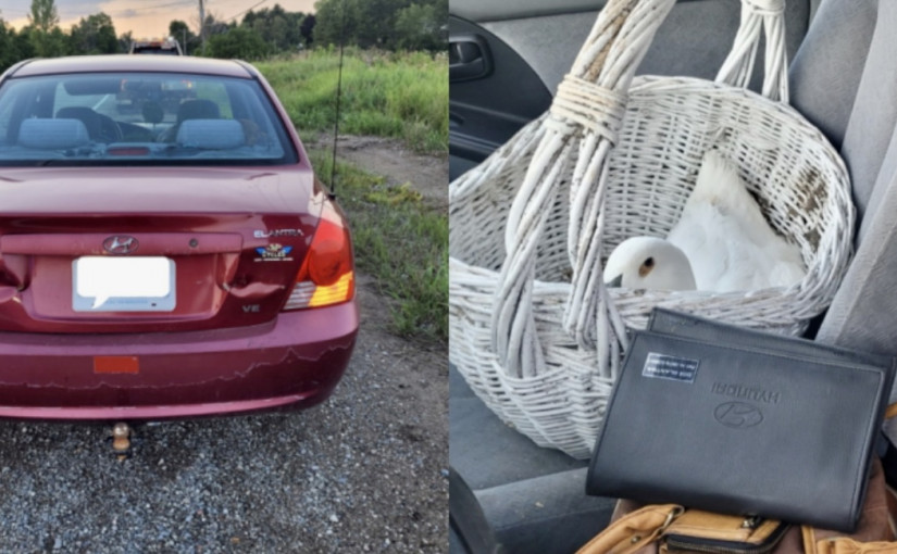 OPP在推特上發布的照片顯示,在這部現代的房車的副駕駛座位上,一隻白色的鴨子坐在一個白色的籃子裡。警方告訴CityNews,這隻寵物鴨是司機的家人撿到的。