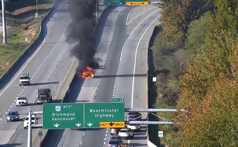 【星島綜合報道】周五(22日)早上,列治文的91號高速公路上,有一輛汽車起火,導致在新西敏公路(Westminster Highway)出口前的所有西行線交通全部封路。