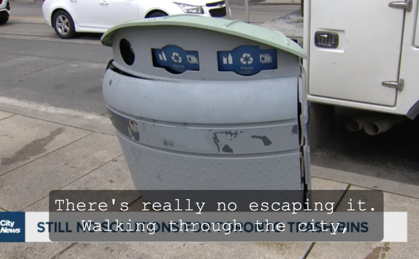 據城市新聞(CityNews)報道,多倫多市府於2007年和第三方公司Astral Out of Home簽了20年合約,由該公司負責多倫多市11,000個垃圾箱的維護。垃圾收集仍由市府負責。