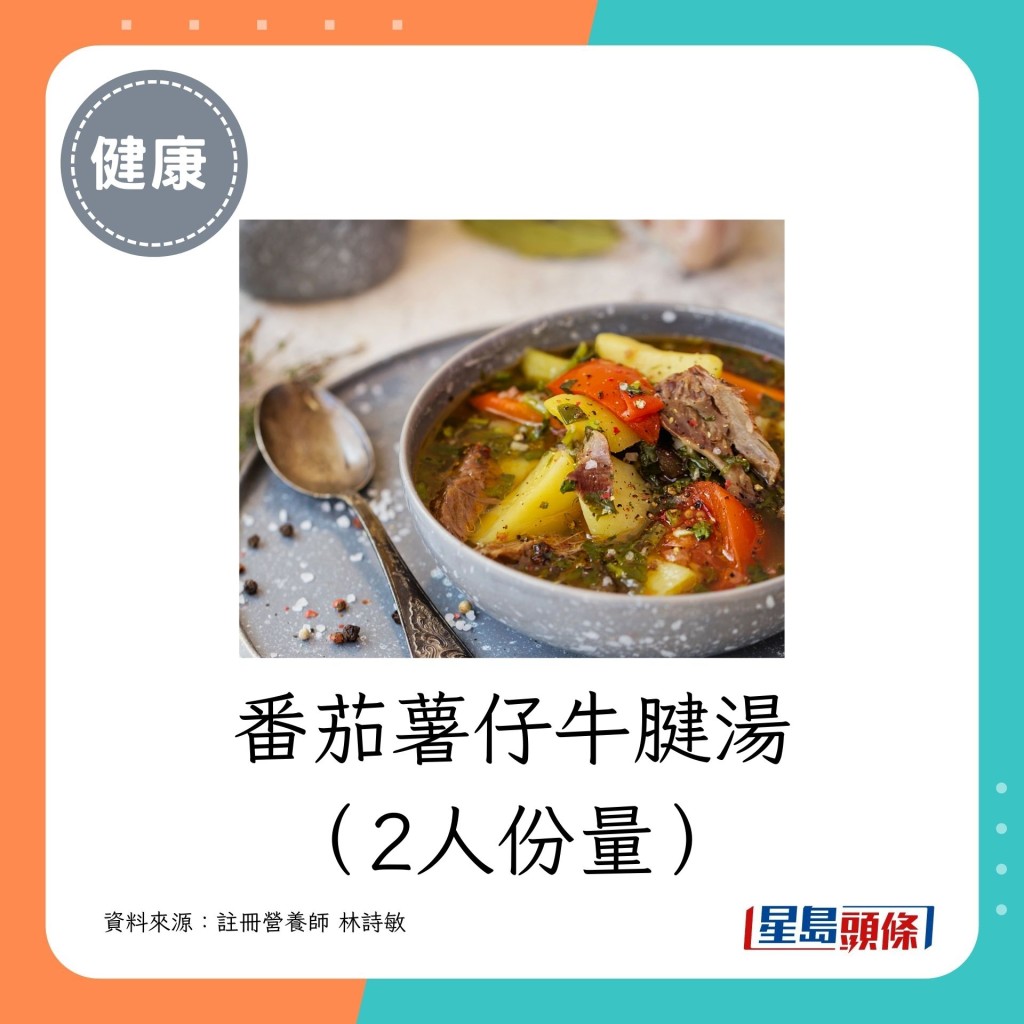 註冊營養師林詩敏選用了富含鉀質的薯仔,教大家製作一款有助減鈉、降血壓的湯水「番茄薯仔牛腱湯」,十分適合於新年過後飲用,以排走體內過多的鈉質,改善高血壓情況。