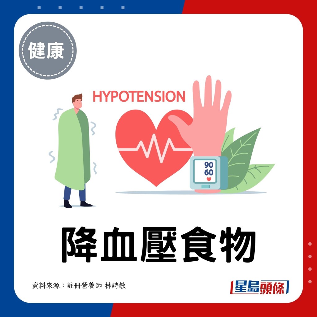 註冊營養師林詩敏推介多款富含鉀質的食材,適量食用並多攝取水分,有利身體加速排走多餘鈉質,避免多餘水分滯留體內,同時調節血壓。