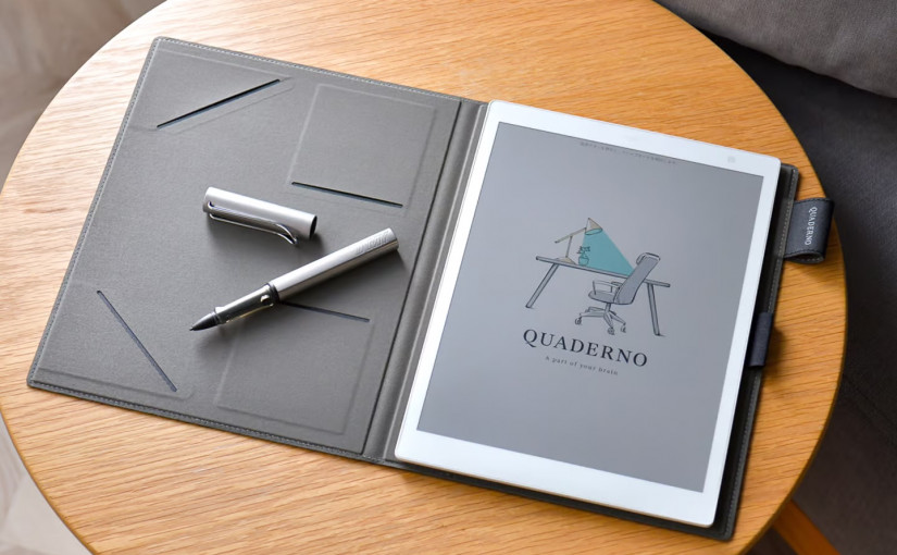 富士通的 E Ink 記事本之旅始於 A4 型號,這款設備採用 Carta 技術,擁有 13.3 吋螢幕,解析度為 2,200 x 1,650 像素,207 ppi,搭載四核心處理器,並配備 1GB RAM 和 16GB 儲存空間,此外還支援 Wi-Fi、藍牙和 NFC。根據 Good e-Reader 在 2020 年的評測,當時 Quaderno A4 是市面上僅有的三款 13.3 吋電子筆記本之一。
