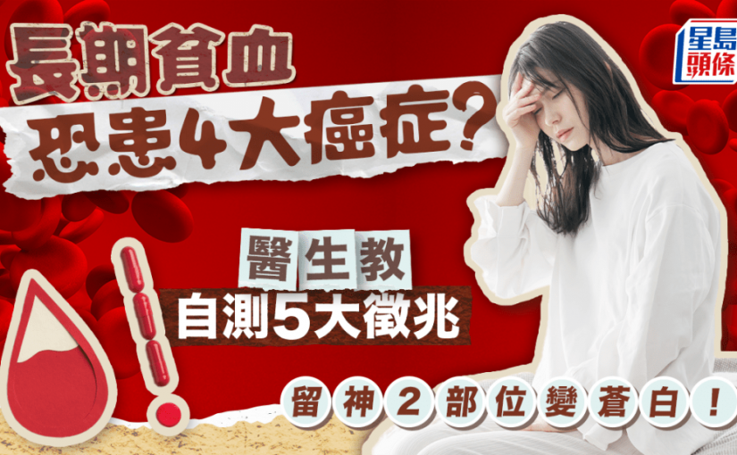 【貧血/癌症徵兆】貧血看似小病痛,不過有醫生指,貧血可能是多種高危疾病,甚至是癌症徵兆,更有機會是癌症擴散的警號,不能掉以輕心。要知道自己是否正處於貧血狀態,醫生提醒可自測貧血常有的5大症狀,當中包括身體2部位有機會變蒼白。