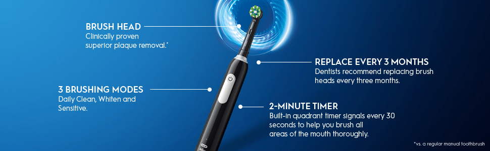 【300%更強潔淨力】專利 3D 清潔技術(震動+旋轉+脈動)配合16°斜角刷毛,比手動牙刷多去除高達300%牙齒邊緣牙菌斑。