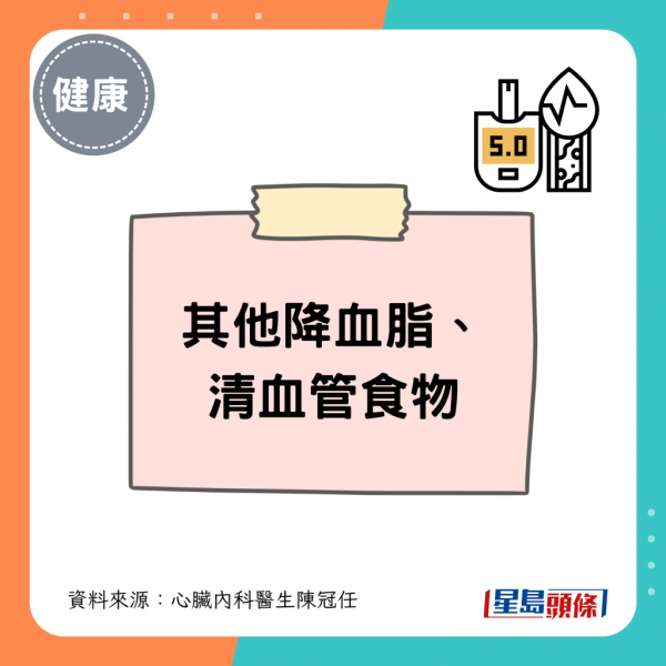 陳冠任醫生也推介了其他有助降膽固醇、清血管的好食物: