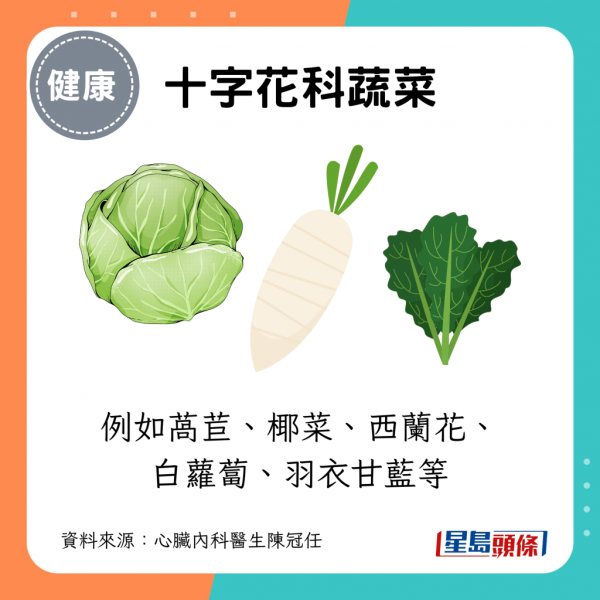 - 十字花科蔬菜:例如萵苣、椰菜、西蘭花、白蘿蔔、羽衣甘藍等。