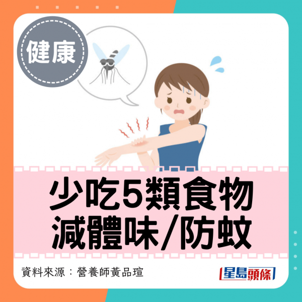 黃品瑄指出,如果多吃以下5類食物,可能間接增加「吸蚊」的機率:
