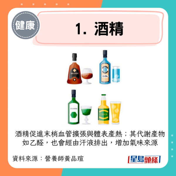 酒精促進末梢血管擴張與體表產熱;其代謝產物如乙醛,也會經由汗液排出,增加氣味來源。