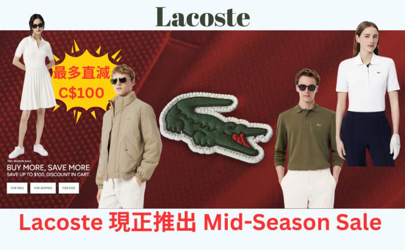 法國經典時尚品牌 Lacoste 現正推出 Mid-Season Sale 中季特賣活動: