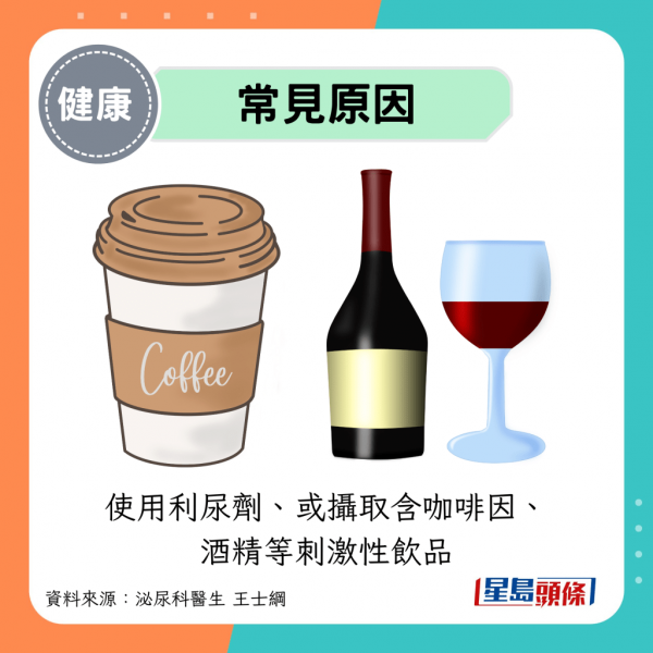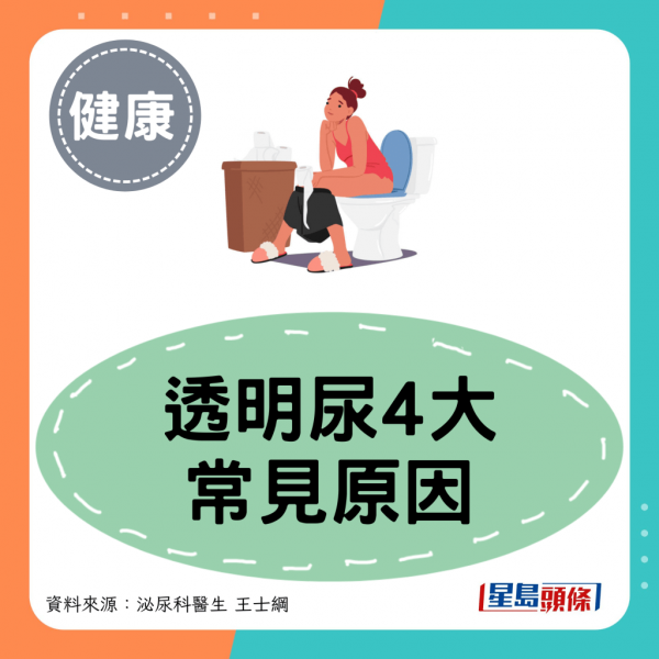王士綱醫生指出,若長期出現透明尿液、頻尿或夜尿次數明顯增加,即每晚超過2次以上,可能反映身體水分調節機制失調或腎臟功能負荷加重,常見成因包括: