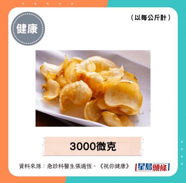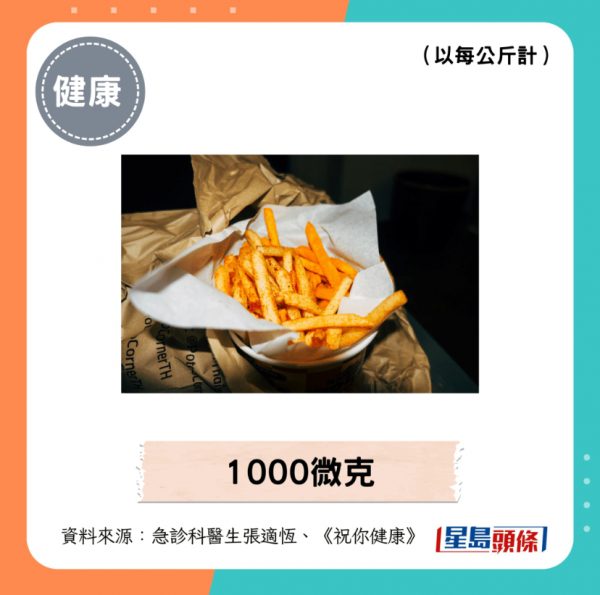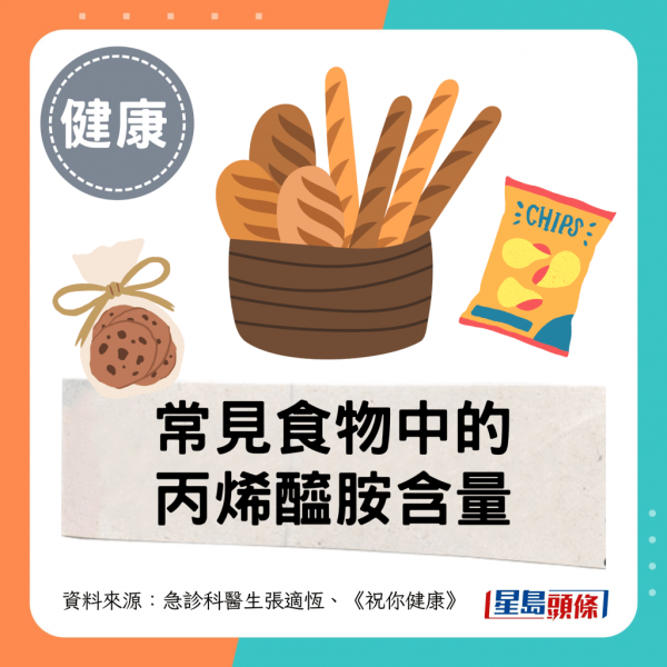 張適恆列出一些常見食物中丙烯醯胺含量(以每公斤計),大家可參考一下: