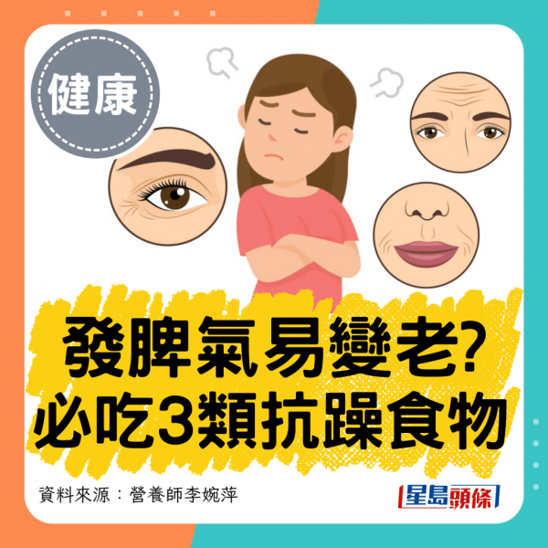 【抗衰老食物/情緒維他命】易怒發脾氣原來不只傷「心」更傷身,加速衰老!與其面對壓力與挑釁時,勉強自己想開一點,不如從飲食入手幫助「抗躁」。有營養師公開了3大類抗煩躁食物,幫助心情變靚,減少因憤怒而導致的衰老速度,穩定情緒抗衰老,由內而外保持心境平和;這1款常吃水果竟然也有上榜?