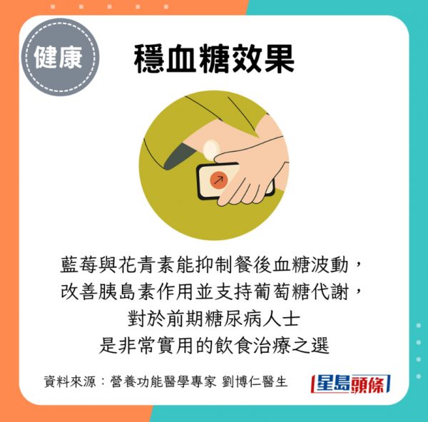 研究發現藍莓與花青素能抑制餐後血糖波動,從而改善胰島素作用並支持葡萄糖代謝,對於前期糖尿病人士是非常實用的飲食治療之選。
