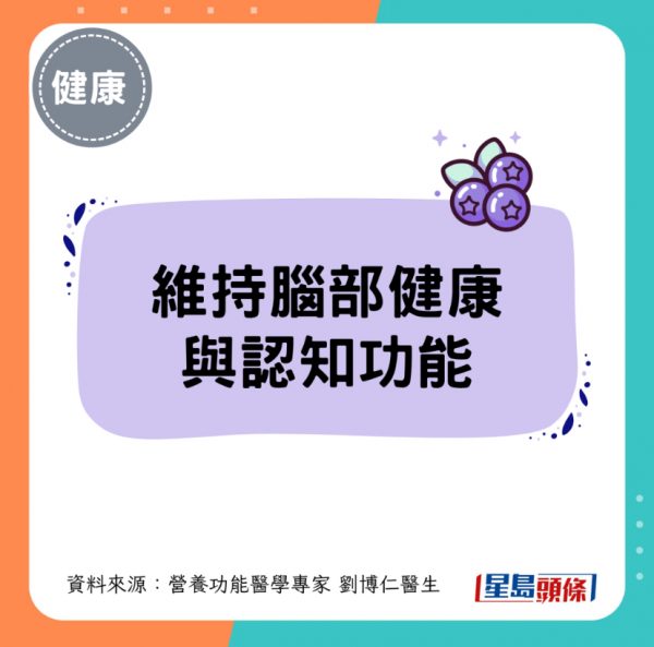 多吃藍莓有助提升短期記憶,降低氧化壓力,尤其適合50歲以上熟齡人士加強保護神經及大腦。