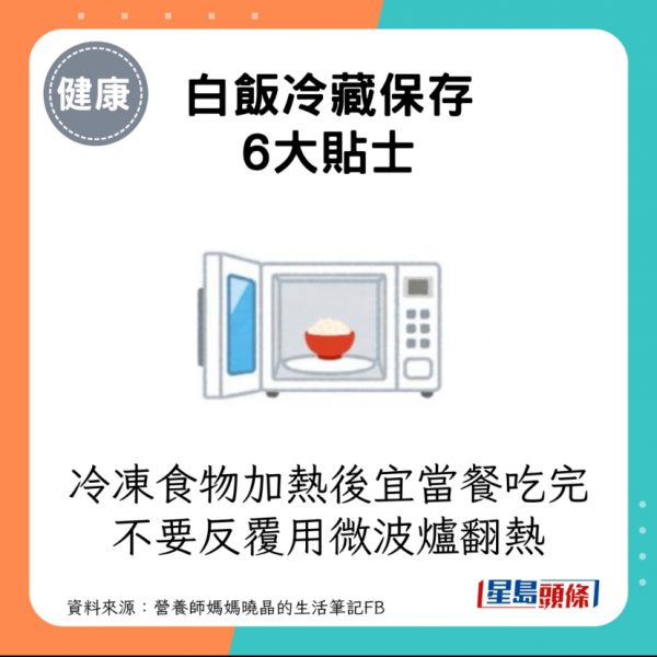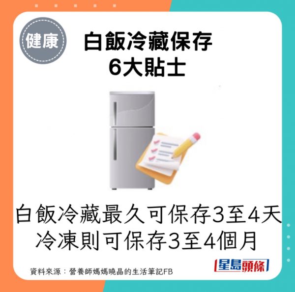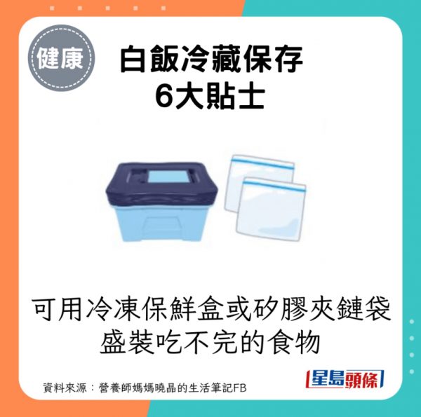 她表示,可參考以下6個保存白飯的貼士,以減低食安風險,吃得更安心: