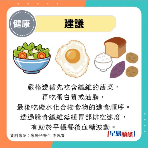 家醫科醫生李思賢近日在個人Facebook專頁分享了5種生活中可以執行的穩定血糖方法,當中包括:
