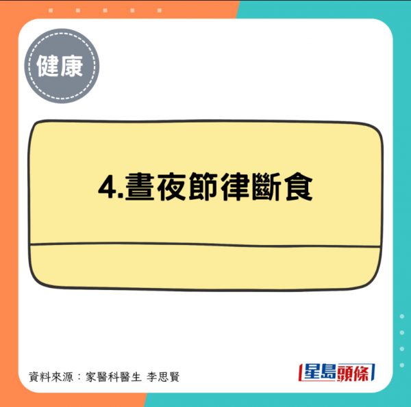 睡前3至4小時停止進食,或日落後不再進食,避免在褪黑激素抑制胰臟功能的時段攝入熱量,以預防生理性胰島素阻抗。