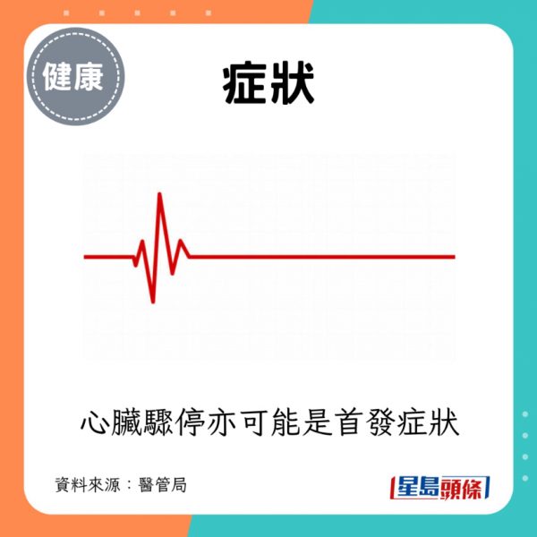 - 有時,心臟驟停亦可能是急性心肌梗塞的首發症狀。