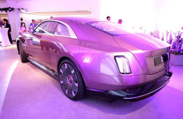 勞斯萊斯Spectre Inspired by Primavera別注版,有三種不同車身顏色配搭,包括Evanescent(珍珠白色)、Reverie(灰綠色)及今次見到的Blossom(粉紫色)。