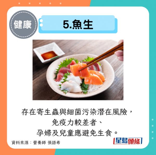 存在寄生蟲與細菌污染潛在風險,免疫力較差者、孕婦及兒童應避免生食。