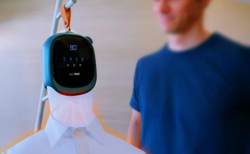 Launbot 的設計概念相當直接:透過熱風與氣壓,將衣物由內而外吹乾,同時拉直皺褶。使用時只需把裝置插上電源,掛在房間任何可承重位置,再接駁隨附的上身或褲裝充氣氣囊,最後把衣物套在氣囊外層。裝置啟動後,氣囊會充氣撐起衣物,並從內部加熱循環熱風,達致乾衣及「熨平」的雙重效果。