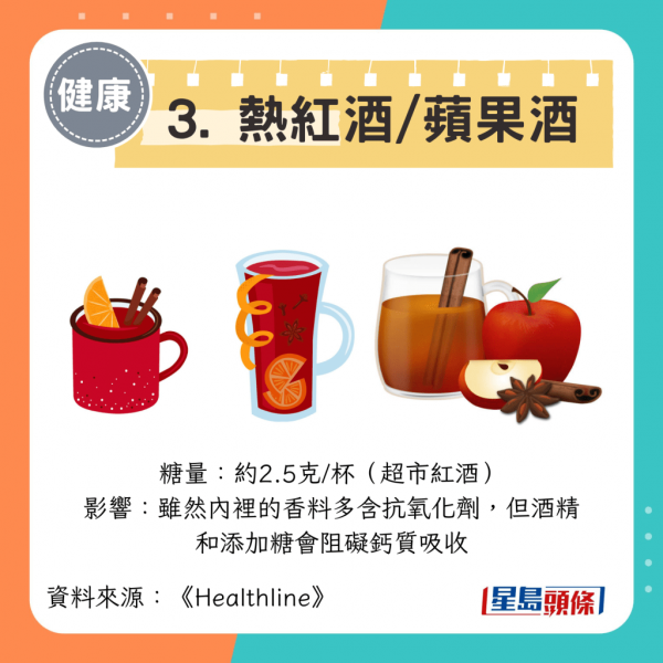 • 影響:雖然內裡的香料多含抗氧化劑,但酒精和添加糖會阻礙鈣質吸收。