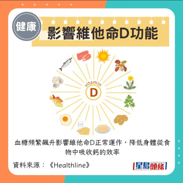 2. 影響維他命D功能:血糖頻繁飆升影響維他命D正常運作,降低身體從食物中吸收鈣的效率。