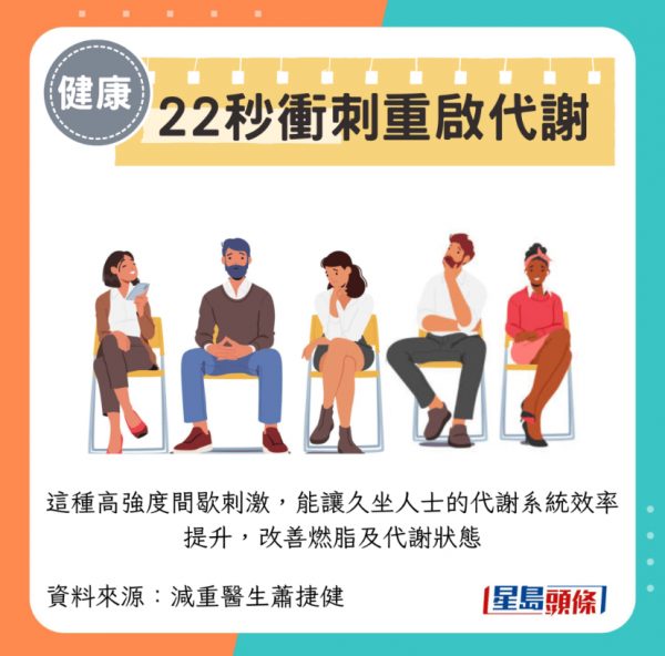 - 這種高強度間歇刺激,能讓久坐人士的代謝系統效率提升,改善燃脂及代謝狀態。