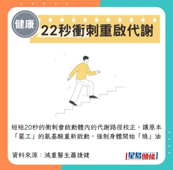 蕭醫生強調,「不動」本身就是一種慢性增肥計劃;這項研究提供了強力的科學實證,即使生活再忙,每天只需要22秒的樓梯衝刺就能幫心臟脫掉「豬油背心」,為身體帶來實質的改變,維持心血管健康。