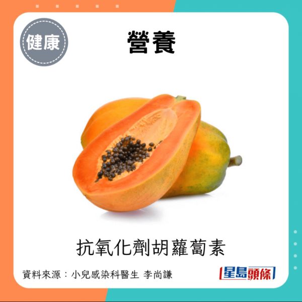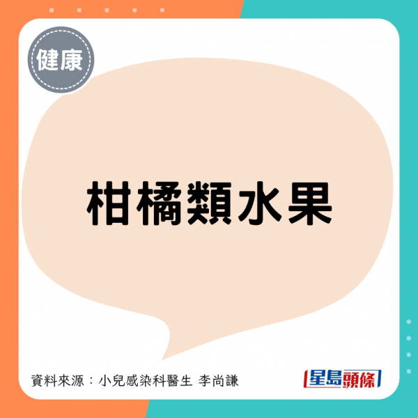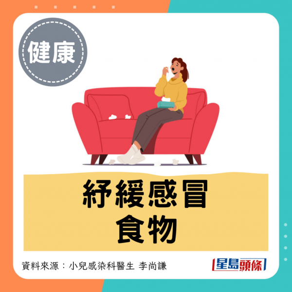 除了橙等柑橘類水果外,李尚謙醫生表示,以下食物同樣可促進免疫力,有助紓緩感冒症狀: