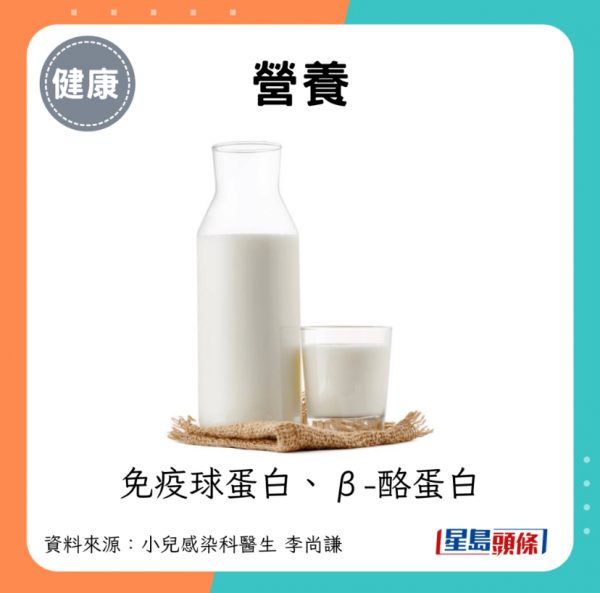 - 營養素:免疫球蛋白和β-酪蛋白。