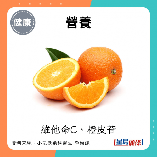 感冒吃橙,會否加重症狀?小兒感染科醫生李尚謙在其Facebook專頁發文指,雖然橙含有的檸檬酸有機會刺激呼吸道,不過如要真正「刺激」到呼吸道,其實需要攝取大量檸檬酸,一般人通常難攝取到這樣的份量。相反,橙含有豐富的維他命C、橙皮苷等營養,本身有促進免疫力及抗發炎的功效,因此,他建議感冒期間不妨多吃橙。