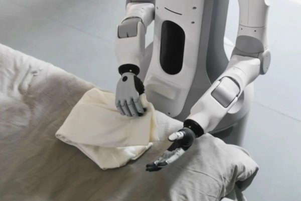 乍看之下,來自中國內地的家用機械人SwitchBot onero H1,有人笑說身軀像拉長了的空氣清新機,再配上一張機械人臉。跟CLOiD一樣,onero H1為穩定自如移動,同樣以滾輪底盤代替雙足,全身合共具備22個自由度,主要集中在雙臂及上半身,目標是做到「抓、推、開、收」這幾個最常見的家務動作,如抓起不同衣物、開門、推回抽屜、將碗碟放進廚櫃。