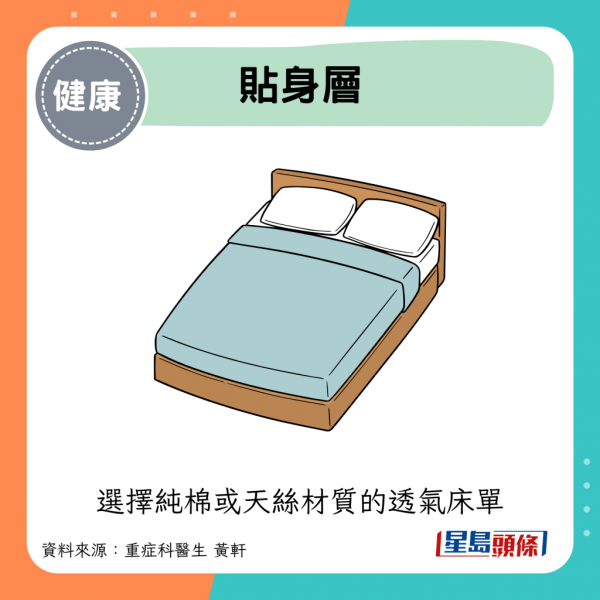 - 貼身層:選擇純棉或天絲材質的透氣床單
