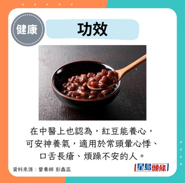 紅豆和薏米是生活中常見的搭配,具有清熱解毒、祛濕消腫、健脾養胃等功效。在中醫角度,紅豆能養心,可安神養氣,適用於常頭暈心悸、口舌長瘡、煩躁不安的人士。紅豆除了可以與薏米一起煮,還能與鰂魚、冬瓜等搭配菜式,更能製成紅豆沙、紅豆餡和紅豆粥等。