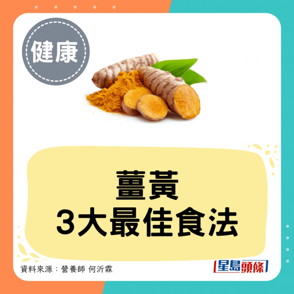 營養師何沂霖在Facebook專頁撰文指,近年來薑黃成為熱門食材,其具有抗發炎、抗氧化、並對肝臟、關節及心血管健康有益等多種功效。她也分享3種食用薑黃的方法,供大家參考: