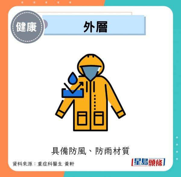 - 外層:具備防風、防雨材質