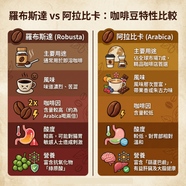 羅布斯塔咖啡豆和阿拉比卡咖啡豆,風味、咖啡因含量、營養上有何不同?