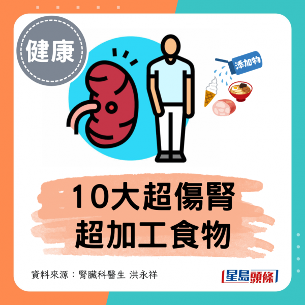 洪永祥醫生列舉10大常見的超加工食品,當中暗藏傷腎陷阱: