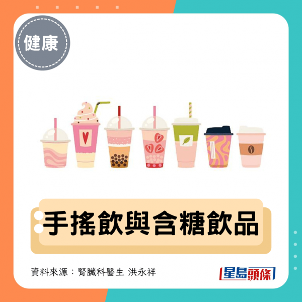 諸如珍珠奶茶、黑糖鮮奶、果汁飲品等,其實都隱藏著大量的糖分,增加糖尿病與代謝綜合症的風險,進而傷害腎臟。