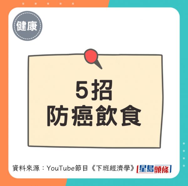 許醫生又提醒,飲食習慣在防癌方面十分重要,以下5項飲食重點有助於抑制胰臟癌等癌症風險: