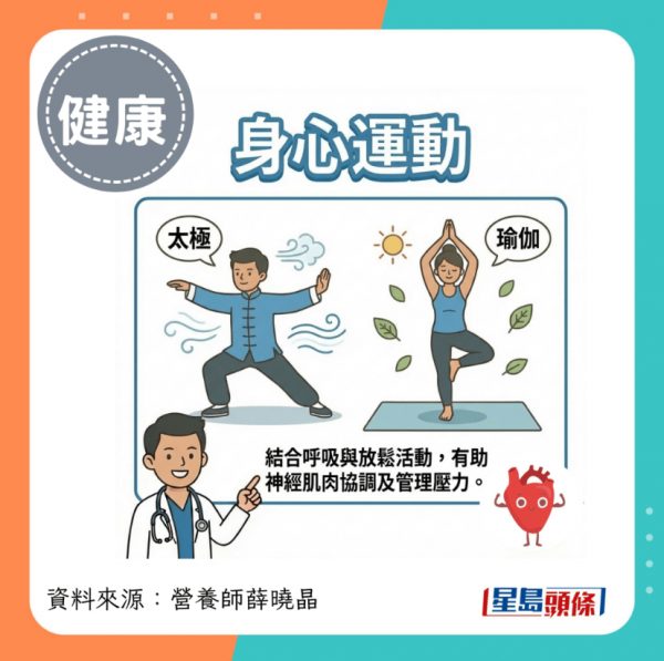 - 身心運動:太極、瑜伽等結合呼吸與放鬆活動,有助神經肌肉協調及管理壓力。